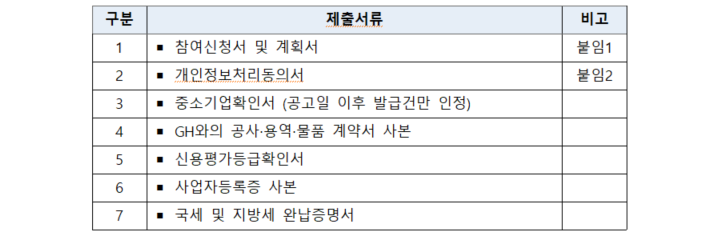 □ (지원자격) 최근 5년 이내 경기주택도시공사(GH)와 공사·용역‧물품 등의 계약 실적이 있는 기업 중 중소기업기본법 제2조에 따른 중소기업