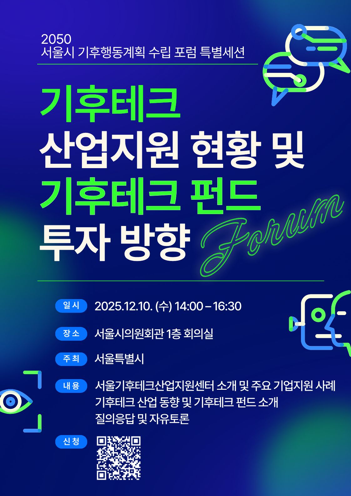 접수 : 2050 서울시 기후행동계획 수립 포럼 특별세션 (기후테크 산업 지원 현황 및 기후테크 펀드 투자방향) - 네이버 폼