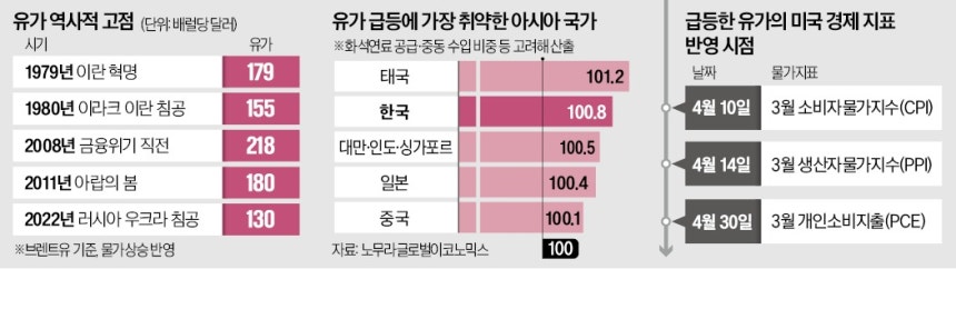 미국에서 휘발유 가격은 갤런당 3.5달러가 임계치로 통하고 있다. 트럼프 행정부 들어 생활비 부담에 시달려온 유권자들이 인플레이션이 심해졌다는 인식을 굳히는 계기가 될 수 있다는 얘기다. 이미 미국 휘발유 평균 가격은 갤런당 3.5달러를 넘어섰다. 2024년 5월 이후 최고 수준이다.