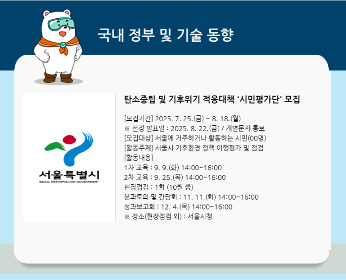 국가기후기술정보시스템(CTis) 뉴스레터(서울기후테크산업지원센터)