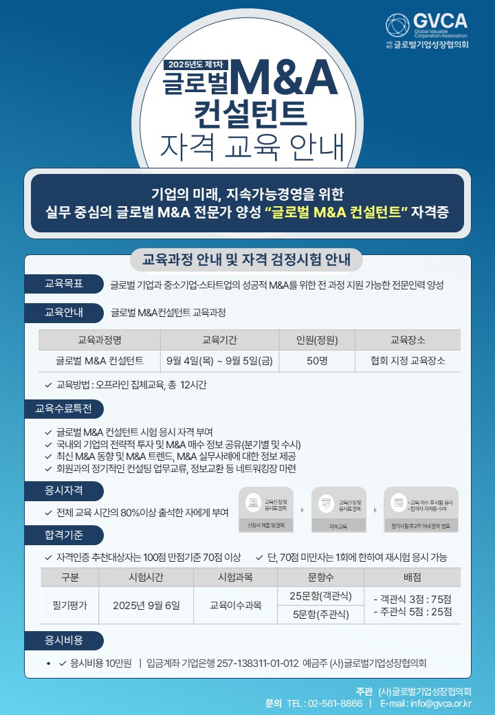 2025년 글로벌 M&A 컨설턴트 자격 교육 모집 (~ 8월 27일까지)