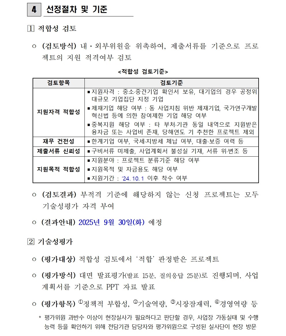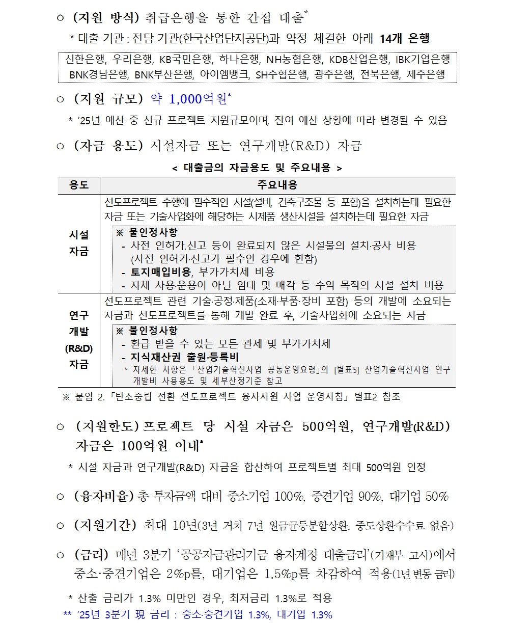 - 프로젝트 당 시설 자금은 500억원, 연구개발(R&D)자금은 100억원 이내